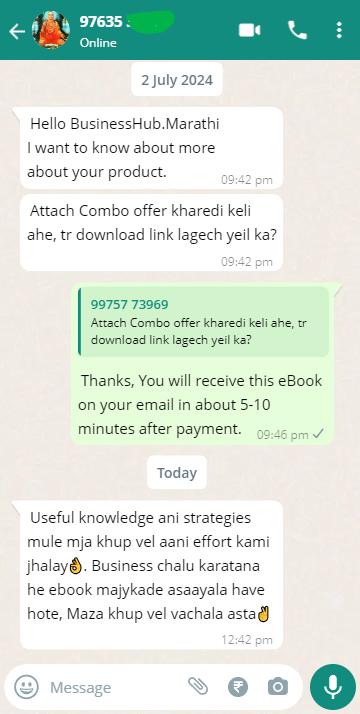 तुम्ही पेमेंट केल्यानंतर लगेच Instant Download Link मिळेल आणि तुम्ही ताबडतोब वाचायला सुरुवात करू शकता तसेच PDF डाउनलोड लिंक ईमेल/WhatsApp वर मिळेल.